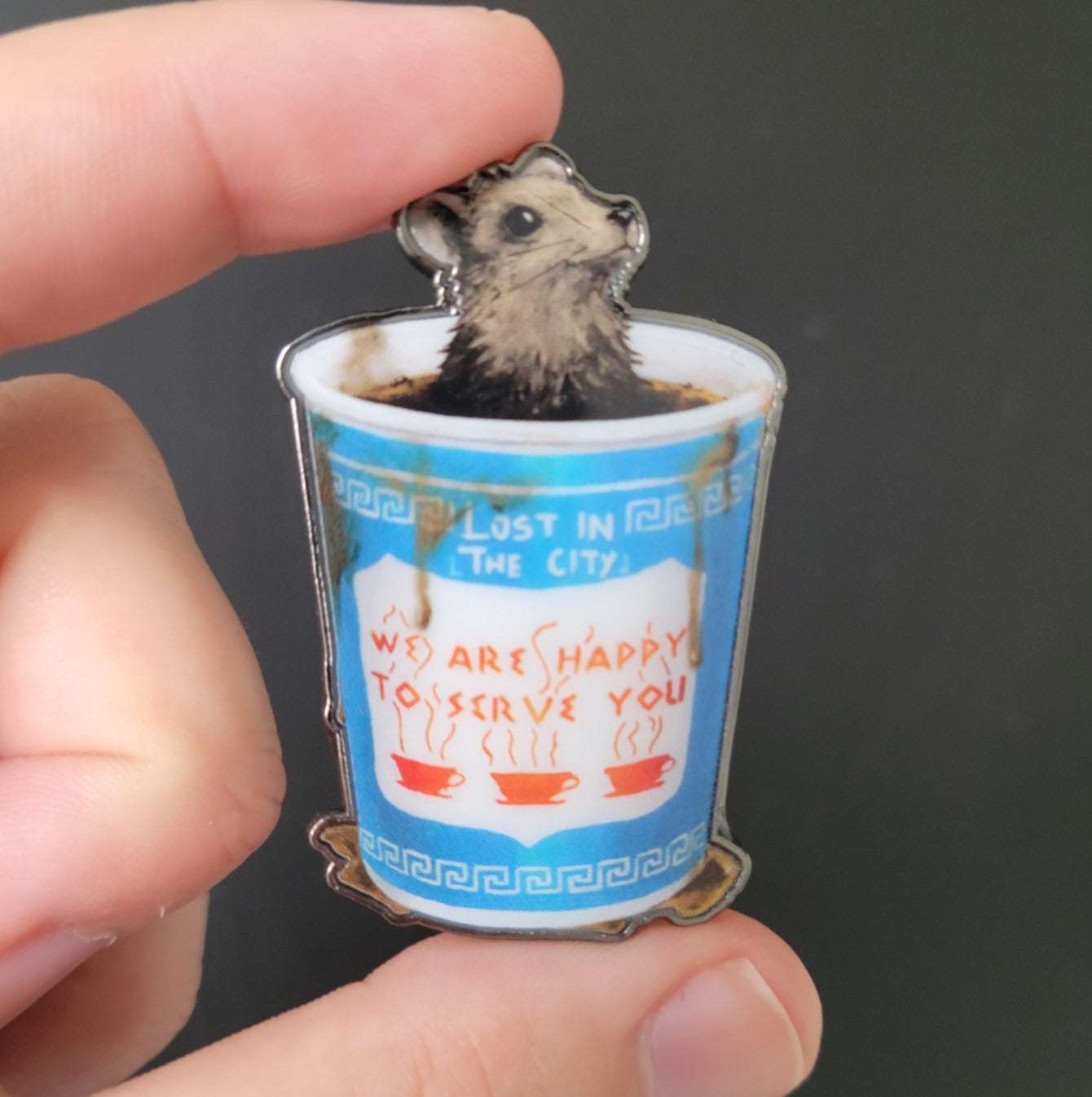Coffee Rat Metallic Pin